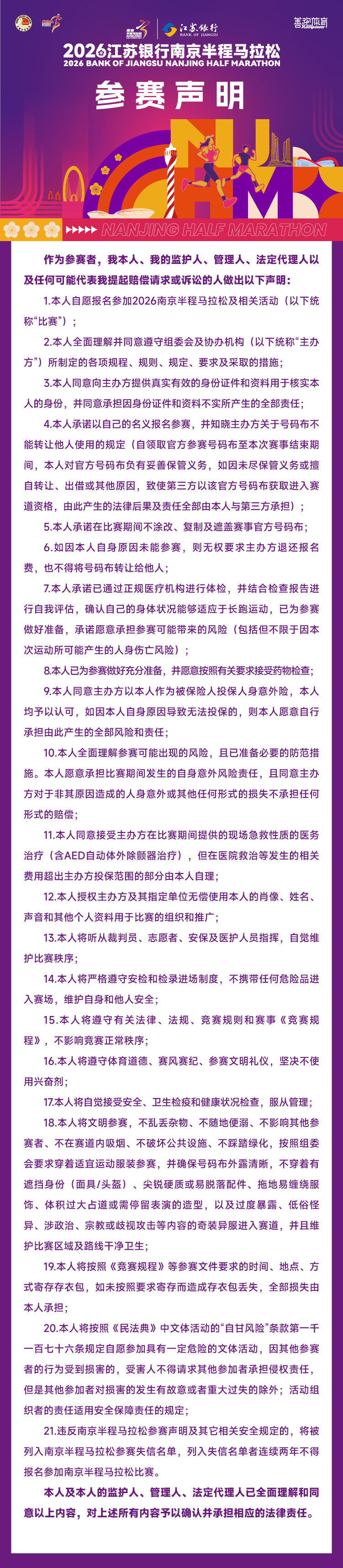 2026南京半程马拉松参赛声明